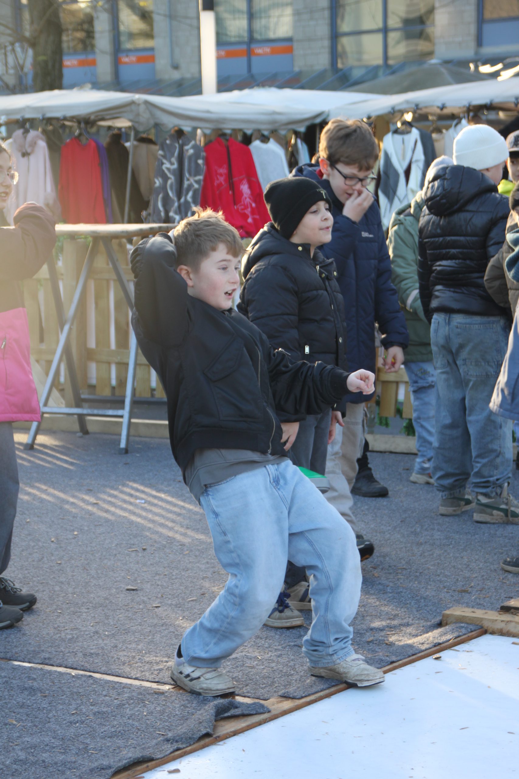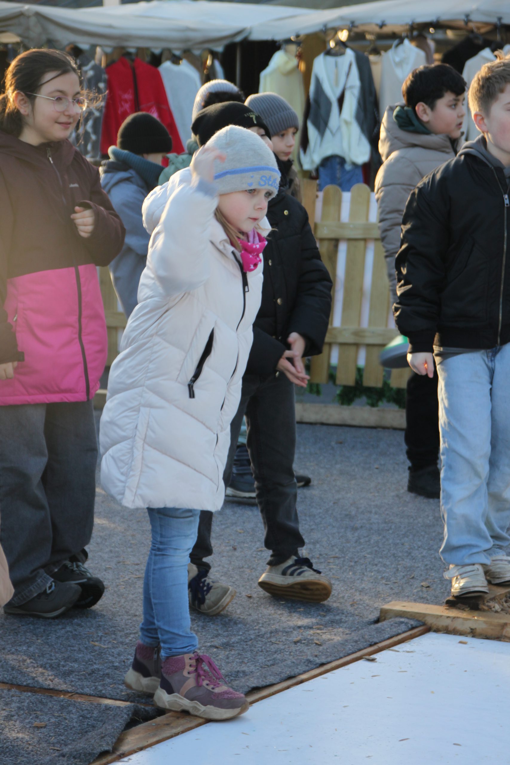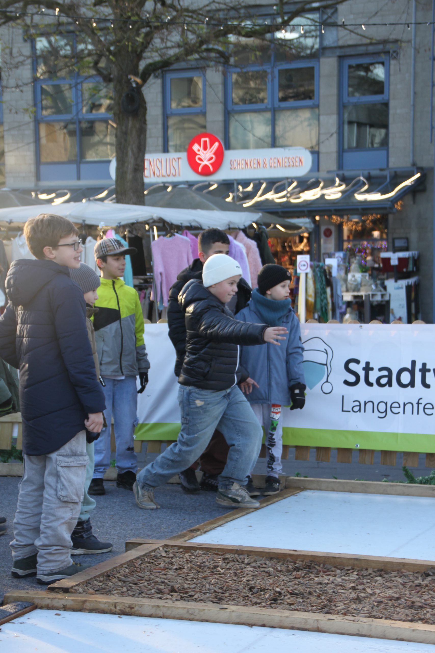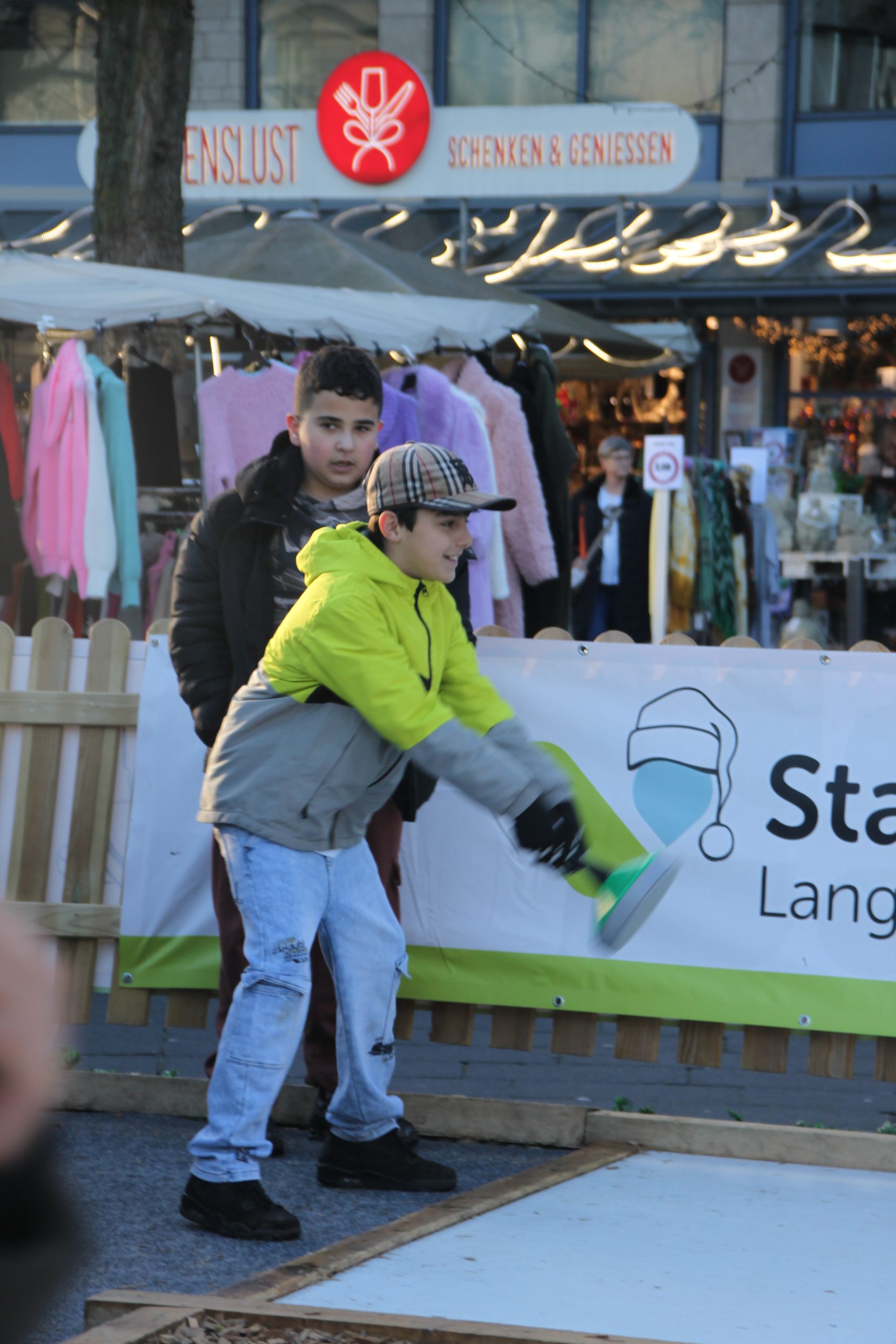 Jede Klasse war für eine ganze Stunde auf der nachhaltigen Eisstockanlage auf dem Marktplatz in Langenfeld und alle Kinder konnten ausprobieren, wie gut sie zielen und schieben können. Was sollen wir sagen: Es hat riesigen Spaß gemacht!