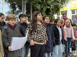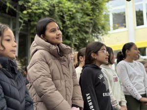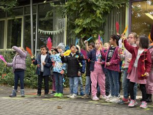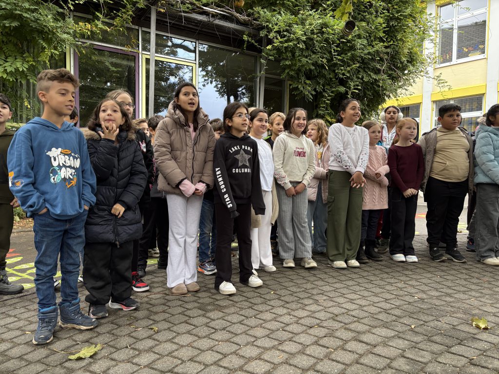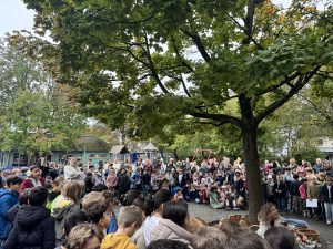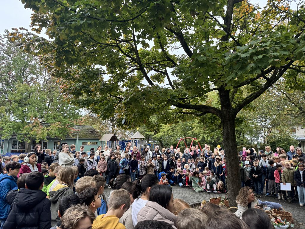 Am 06.10.25 hat die Friedrich-Fröbel-Schule das Erntedankfest gefeiert. Die gesamte Schule hat „Der Herbst ist da“ aufgeführt. Die anderen Klassen haben auch ein Herbstlied aufgeführt. Besonders schön war das Lied von den vierten Klassen. Es hieß „Es war ein schöner Sommer“. Manche Klassen hatten sogar etwas zum Lied Passendes gebastelt. Jede Klasse hat einen Obstkorb mit nach draußen genommen. Danach haben alle gemeinsam gefrühstückt.