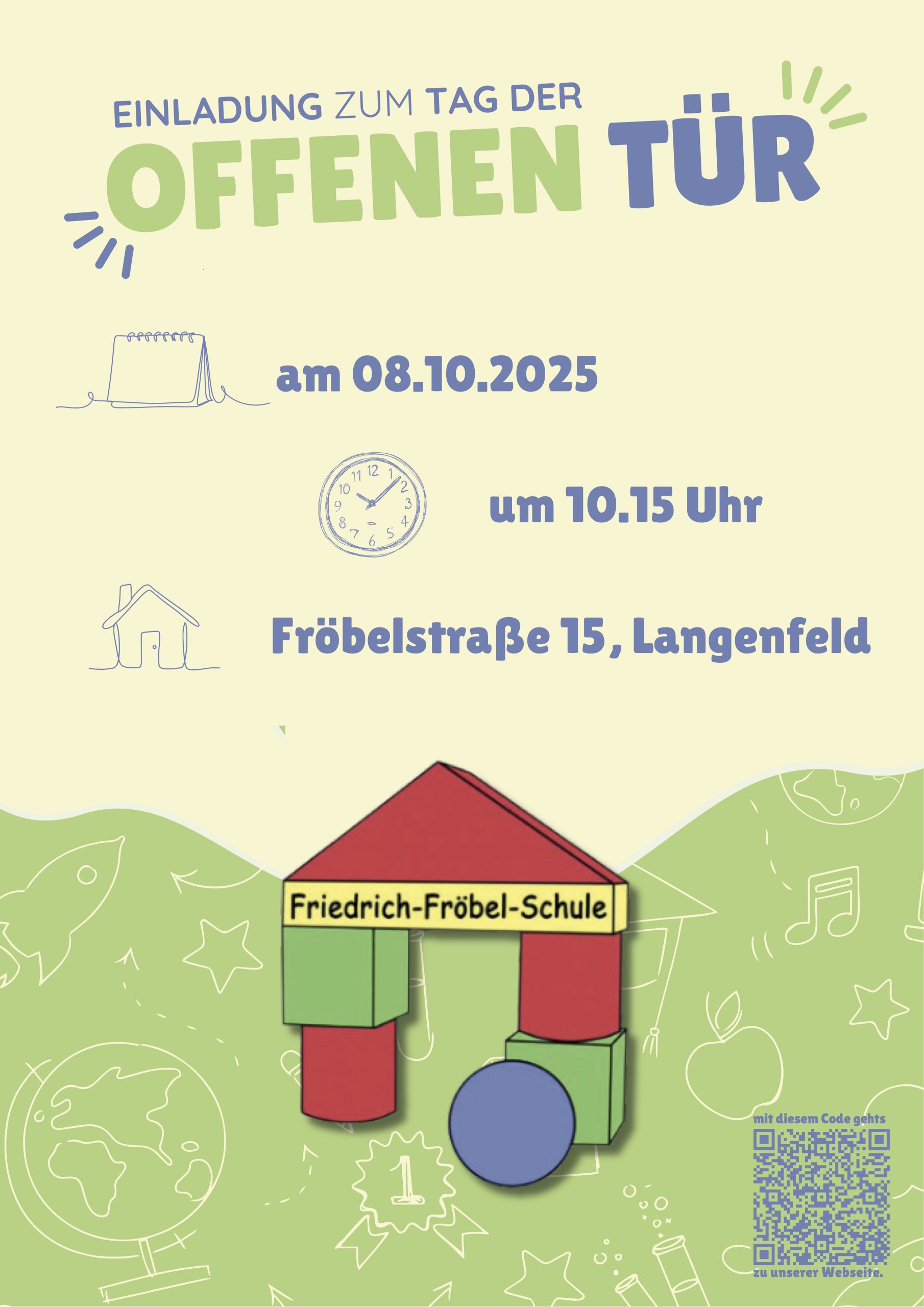 Der Infoabend für alle Eltern der zukünftigen Erstklässler/-innen findet ebenfalls am 08.10.25 um 19:00 Uhr statt.