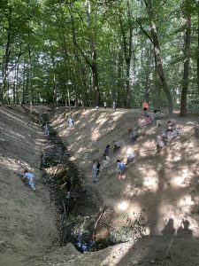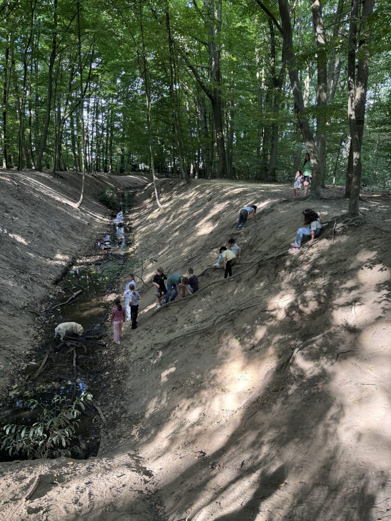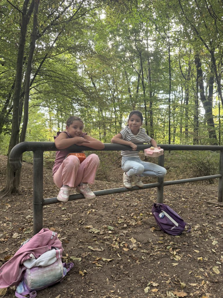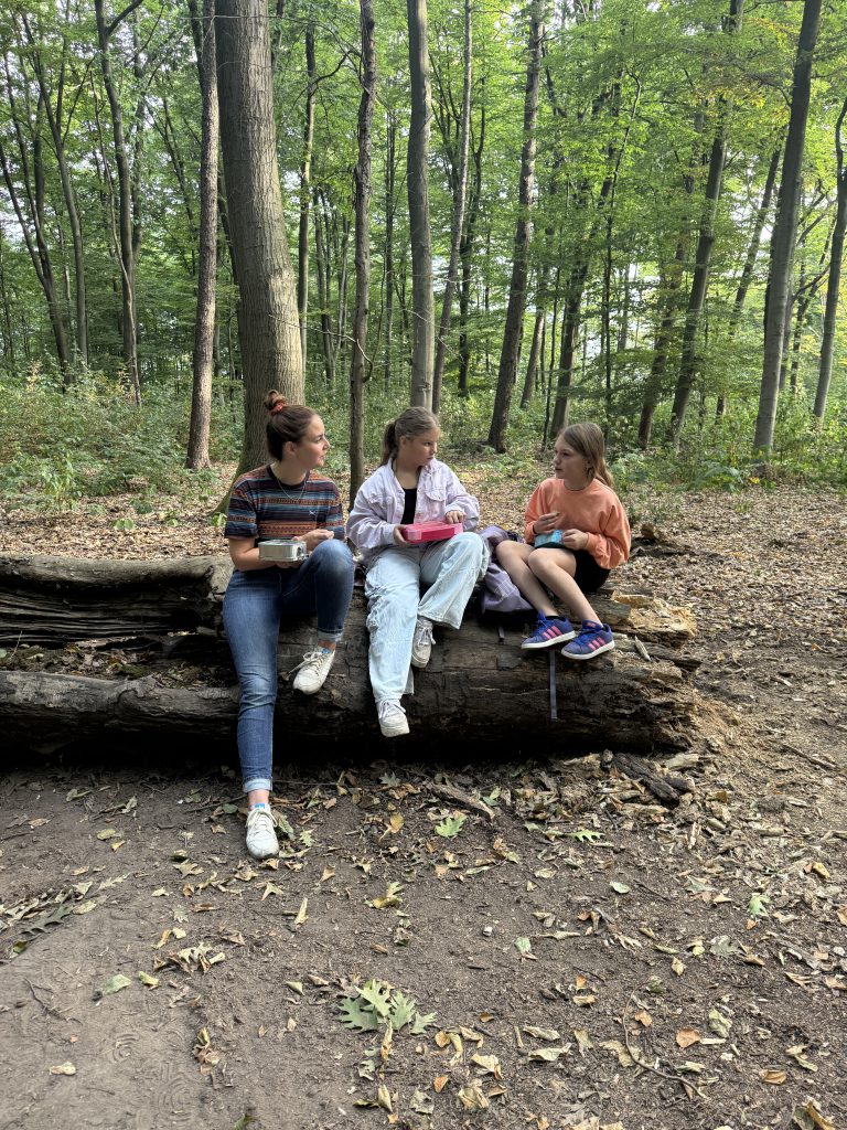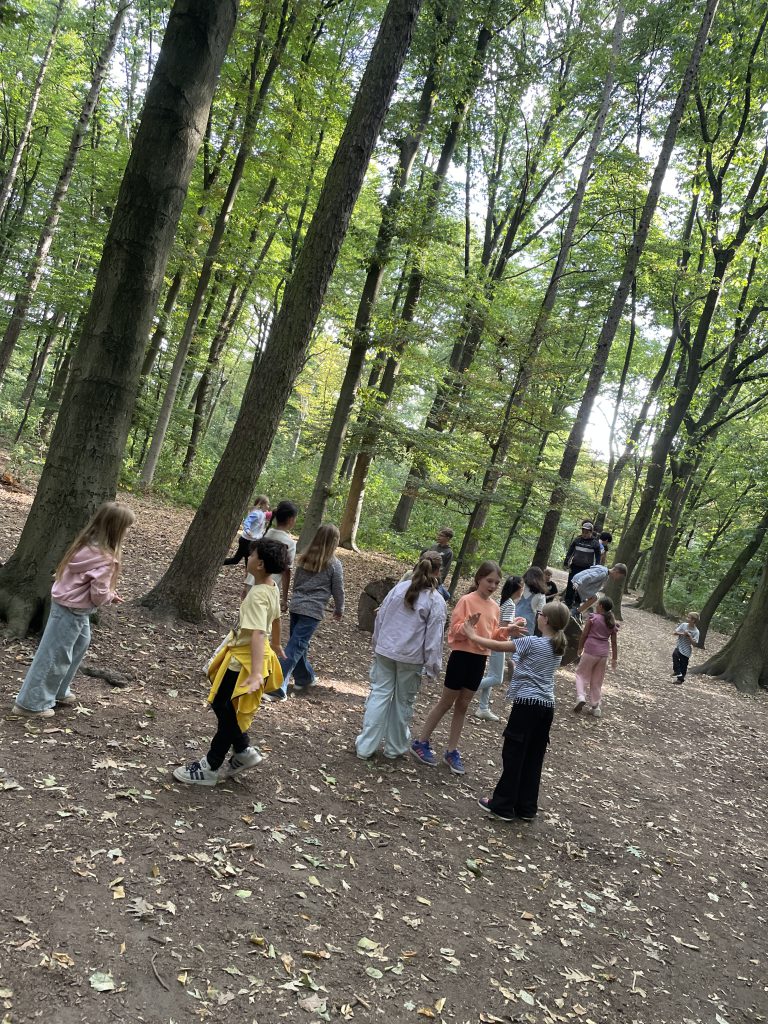 Hallo, ich bin Zeynep. Ich berichte über den Waldspaziergang. Wir sind in den Wald gegangen, um unser Team zu stärken. Wir sind sogar gemeinsam alle zum Bach heruntergeklettert. Dabei haben wir uns gegenseitig geholfen. Wir haben auch sehr tolle Spiele gespielt. Wir mussten uns z. B. nach der Größe oder dem ABC ordnen. Unser Löwenteam hat fast immer gewonnen. Dann haben wir gemeinsam eine Brücke über den Bach gebaut. Manche Kinder haben süße Hunde gestreichelt, das hat sehr viel Spaß gemacht. Der Waldspaziergang hat unser Team sehr gestärkt.